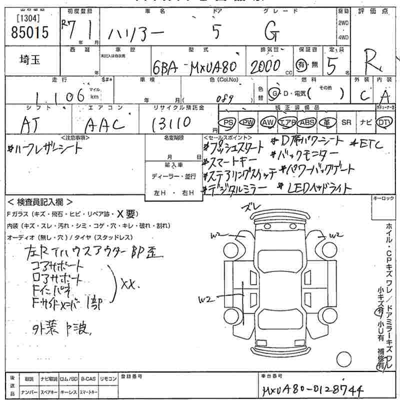 TOYOTA HARRIER G - лот 85015