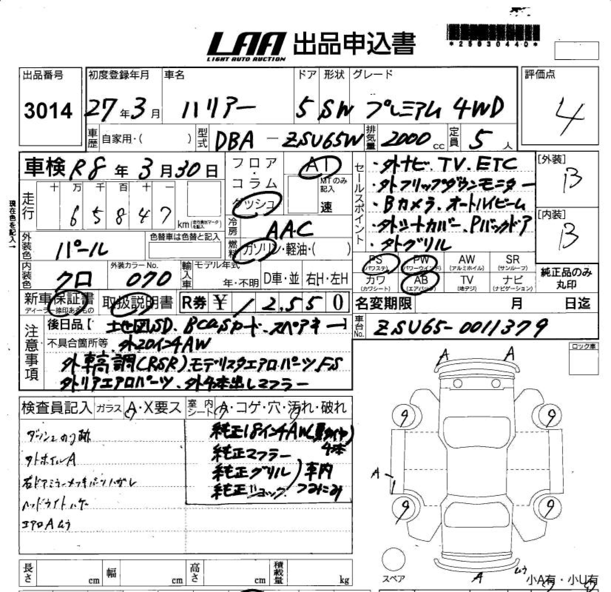 TOYOTA HARRIER PREMIUM 4WD - лот 3014