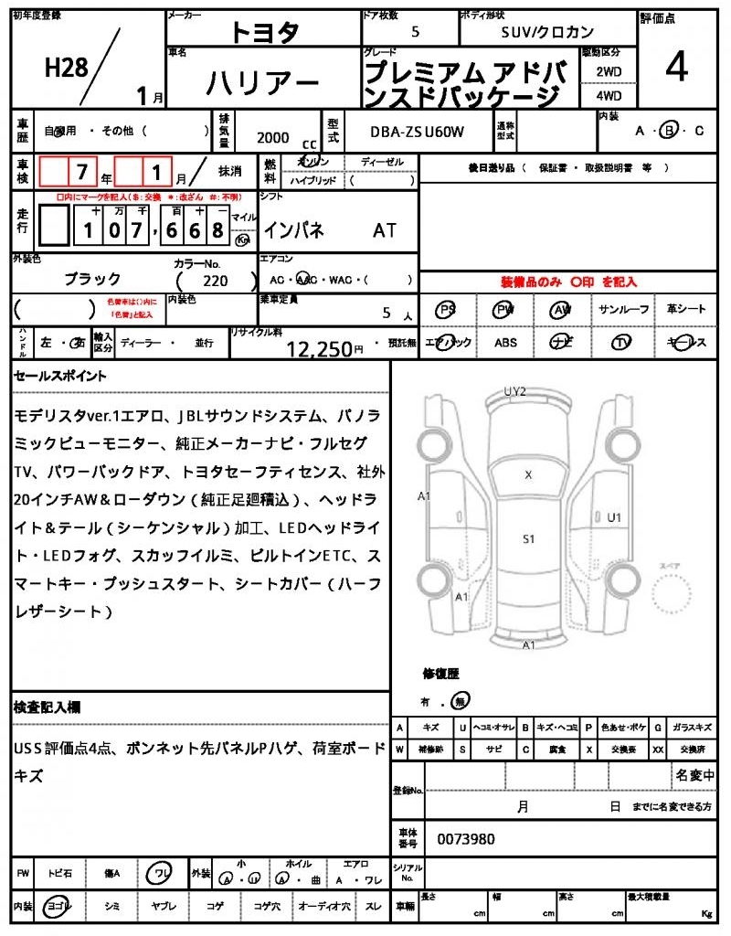 TOYOTA HARRIER - лот 59735