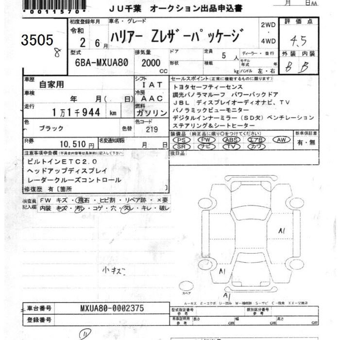 TOYOTA HARRIER Z LEATHER PACKAGE - лот 3505
