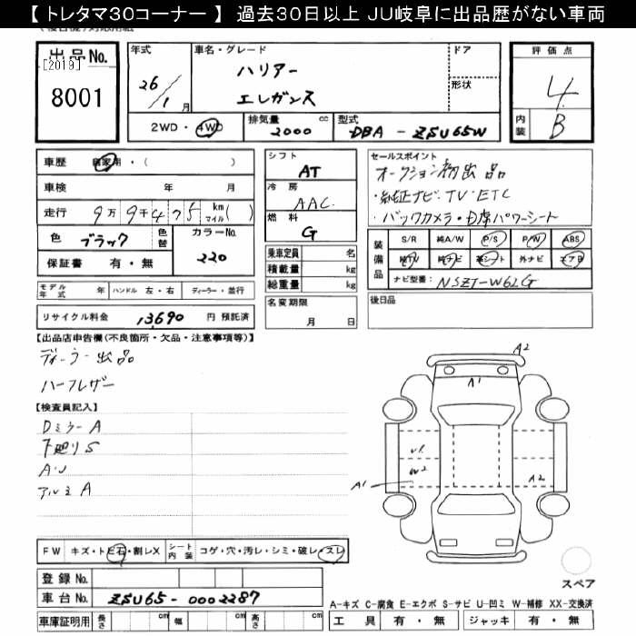 TOYOTA HARRIER 4WD ELEGANCE - лот 8001
