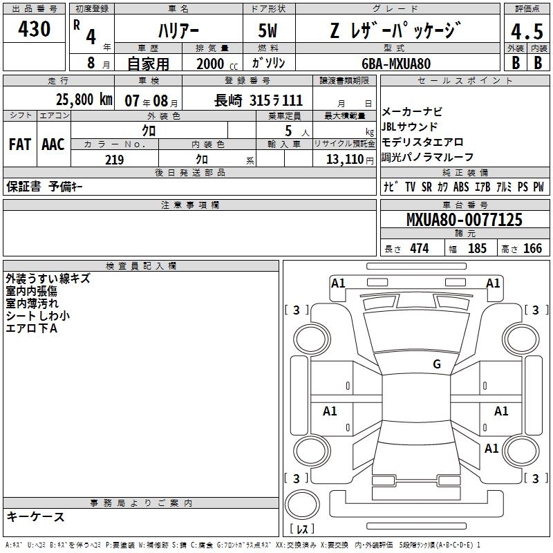 TOYOTA HARRIER - лот 430