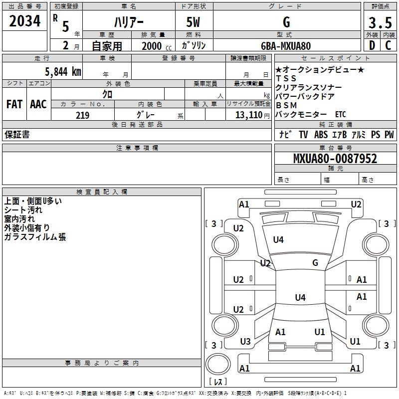 TOYOTA HARRIER - лот 2034