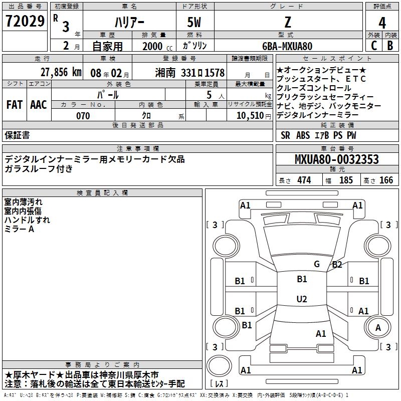 TOYOTA HARRIER - лот 72029