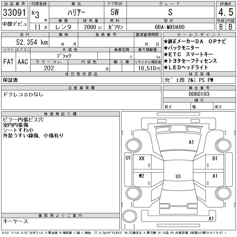 TOYOTA HARRIER - лот 33091