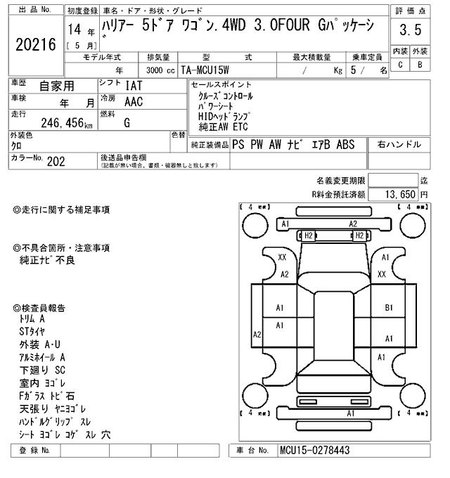 TOYOTA HARRIER - лот 20216