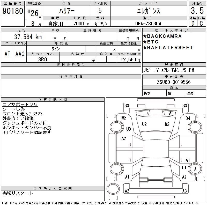 TOYOTA HARRIER - лот 90180