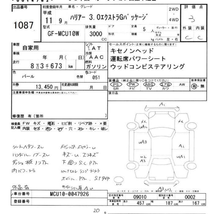 TOYOTA HARRIER - лот 1087