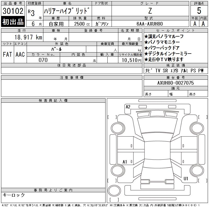 TOYOTA HARRIER HYBRID - лот 30102