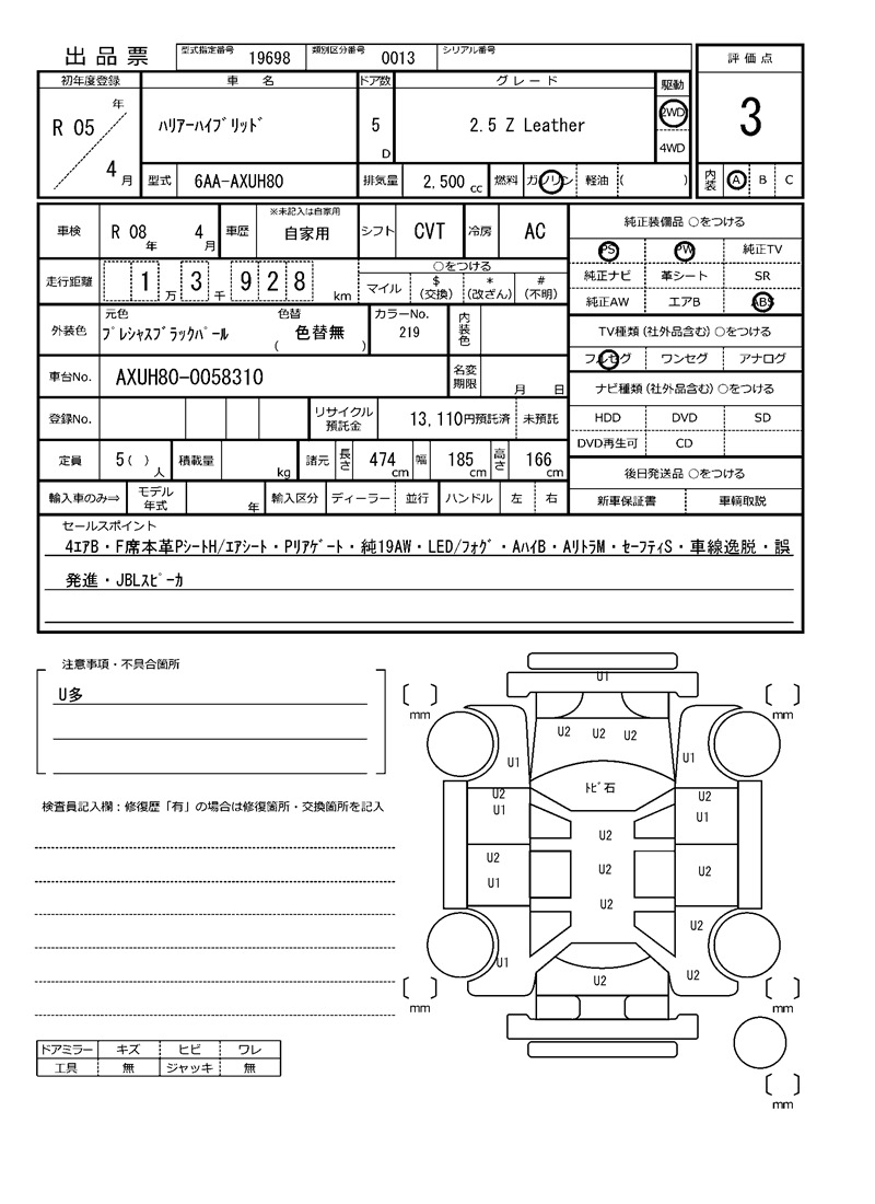 TOYOTA HARRIER HYBRID - лот 66807