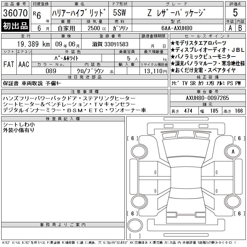 TOYOTA HARRIER HYBRID - лот 36070