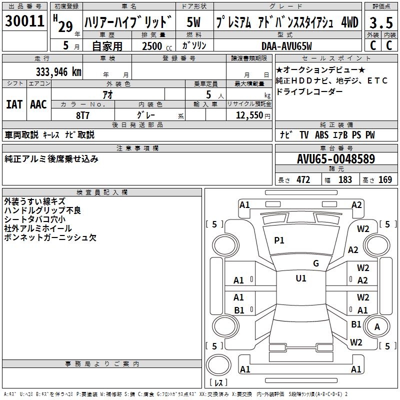 TOYOTA HARRIER HYBRID - лот 30011