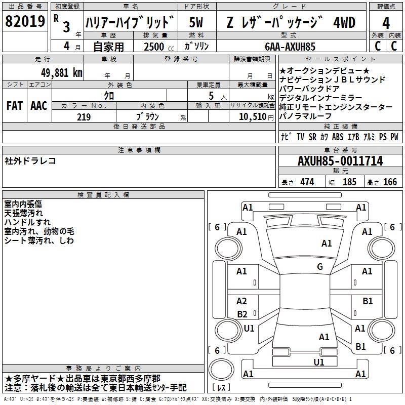 TOYOTA HARRIER HYBRID - лот 82019