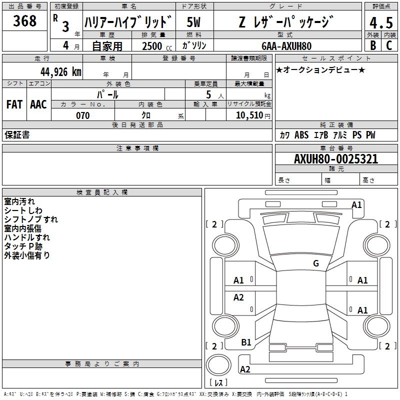 TOYOTA HARRIER HYBRID - лот 368