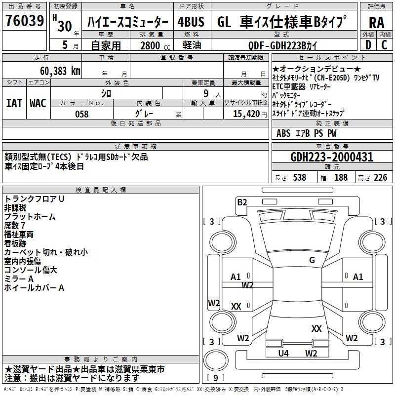 TOYOTA HIACE COMMUTER GLKRU MY S USE CAR B TYPE - лот 76039