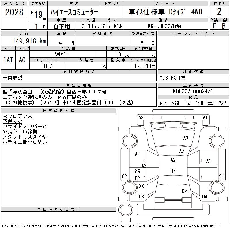 TOYOTA HIACE COMMUTER KRU MY S USE CAR D TYPE 4WD - лот 2028