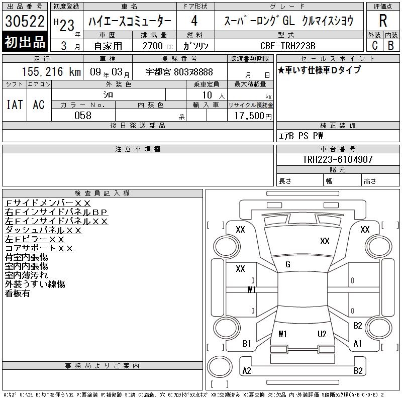 TOYOTA HIACE COMMUTER SUPER LONG GLKRU MY S USE - лот 30522