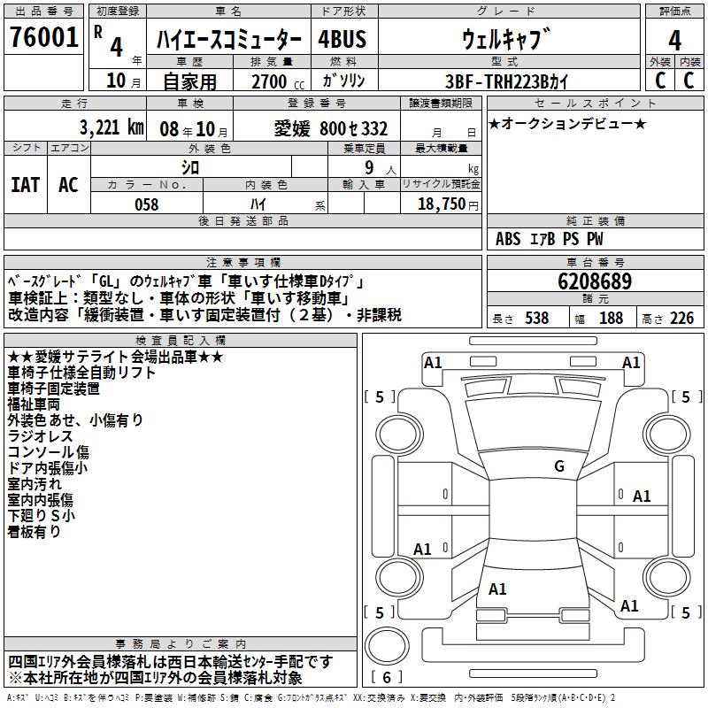 TOYOTA HIACE COMMUTER WELL CAB - лот 76001