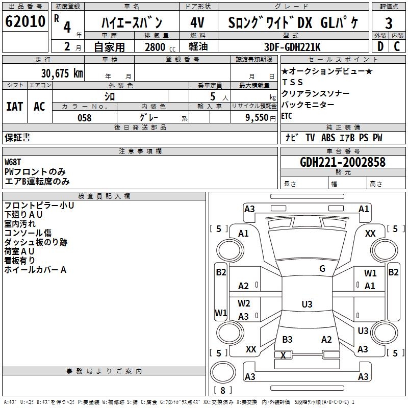 TOYOTA HIACE VAN S LONG WIDE DX GL PACK - лот 62010