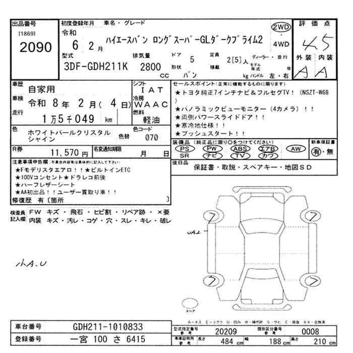 TOYOTA HIACE VAN LONG SUPER GL DARK PRIME 2 - лот 2090