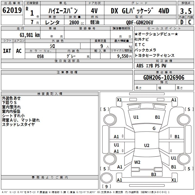 TOYOTA HIACE VAN DX GL PACKAGE 4WD - лот 62019