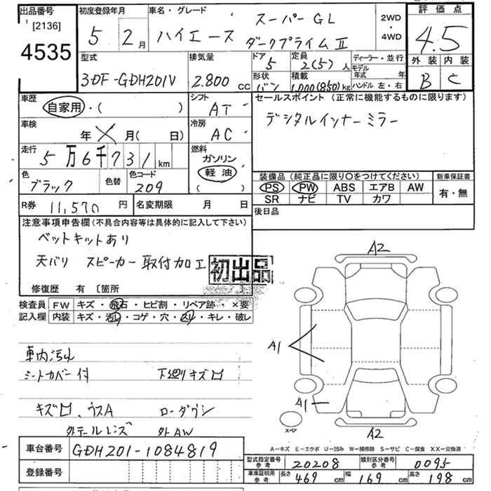 TOYOTA HIACE VAN SUPER GL DARK PRIME II - лот 4535
