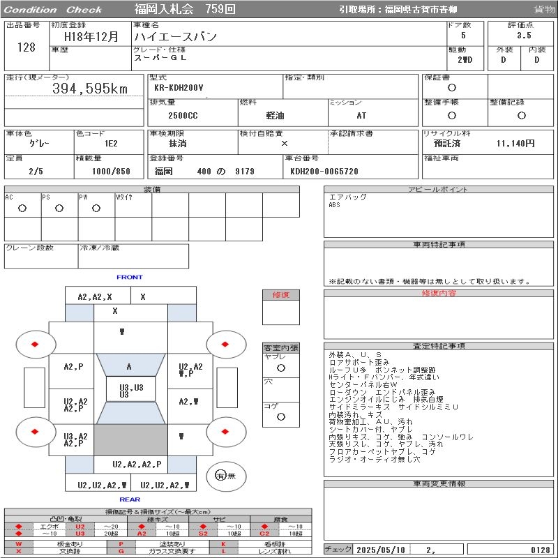 TOYOTA HIACE VAN SUPER GL - лот 128