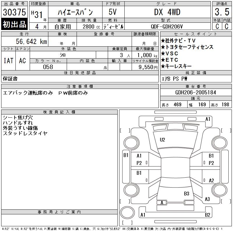 TOYOTA HIACE VAN DX 4WD - лот 30375
