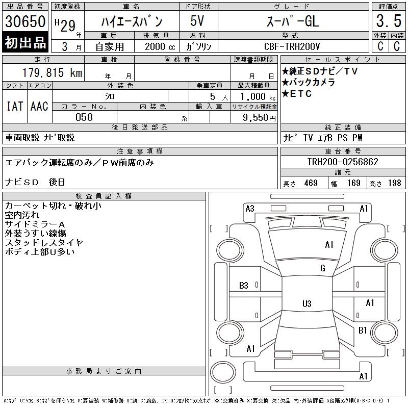 TOYOTA HIACE VAN SUPER GL - лот 30650