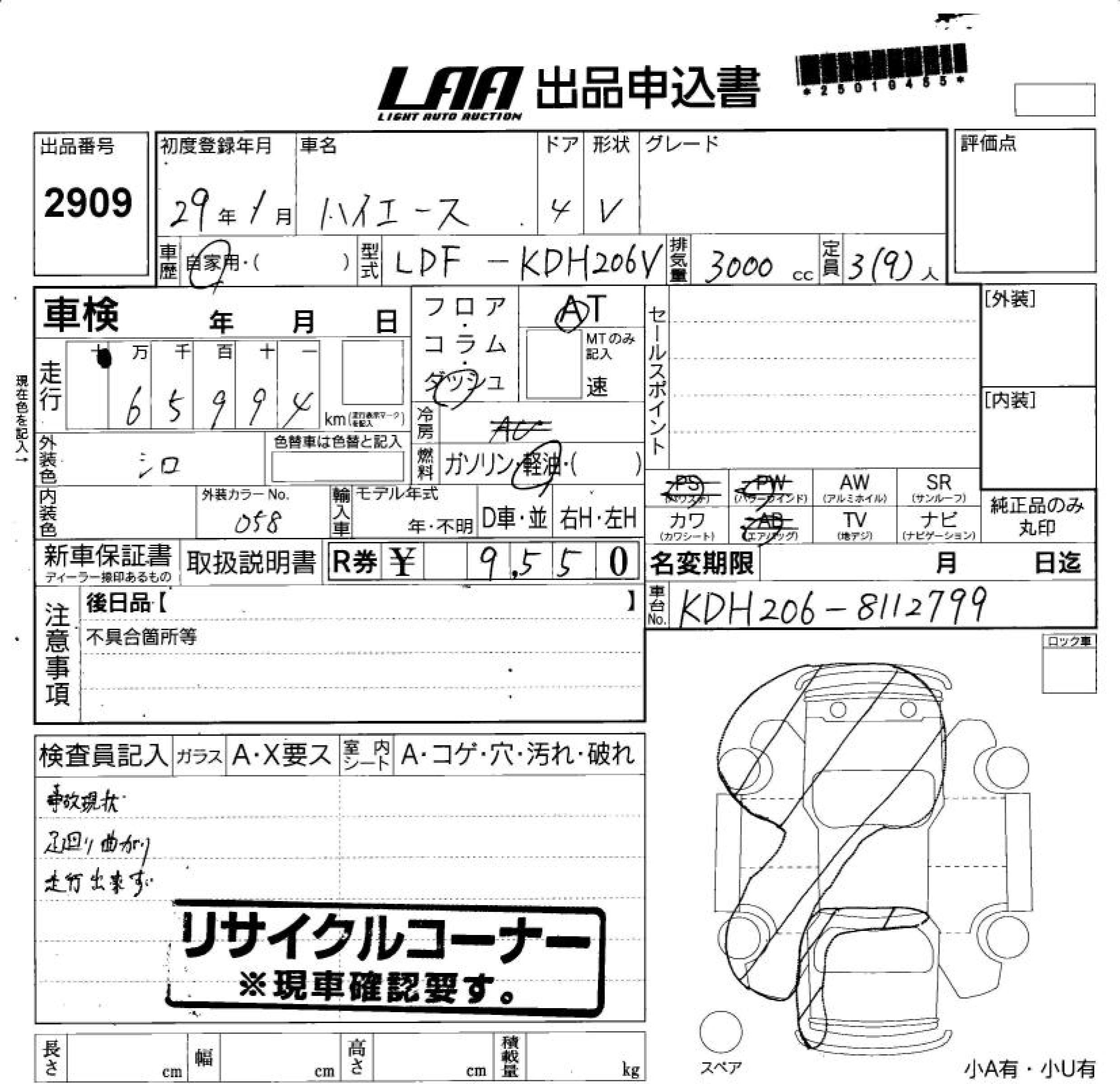 TOYOTA HIACE VAN - лот 2909