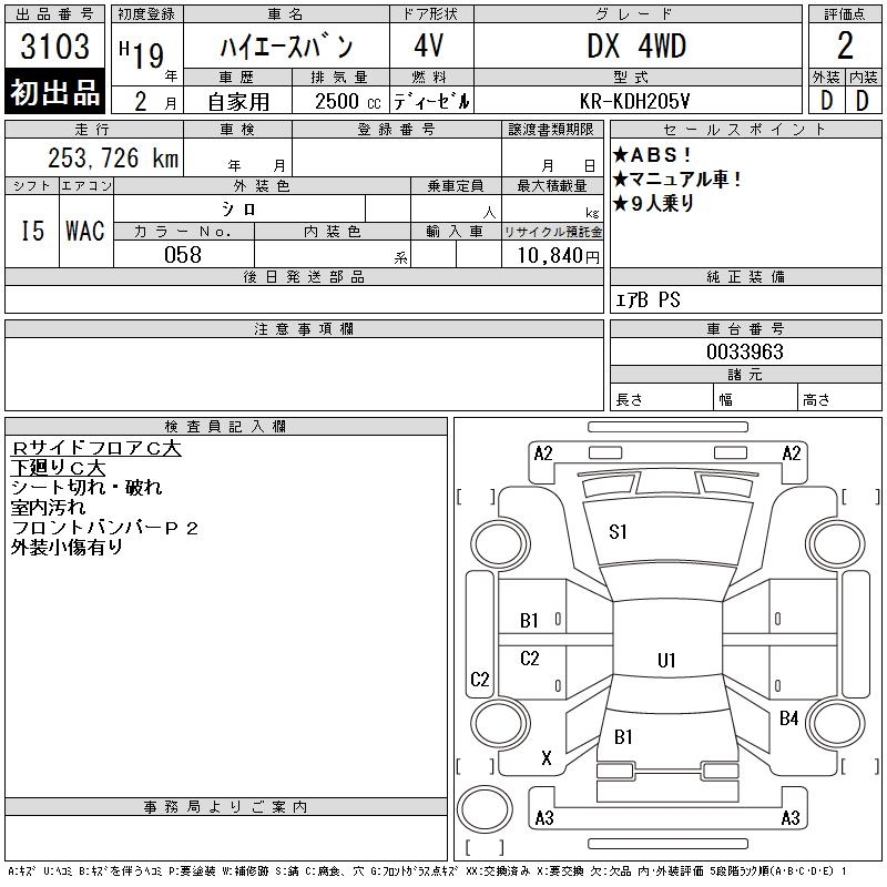 TOYOTA HIACE VAN DX 4WD - лот 3103