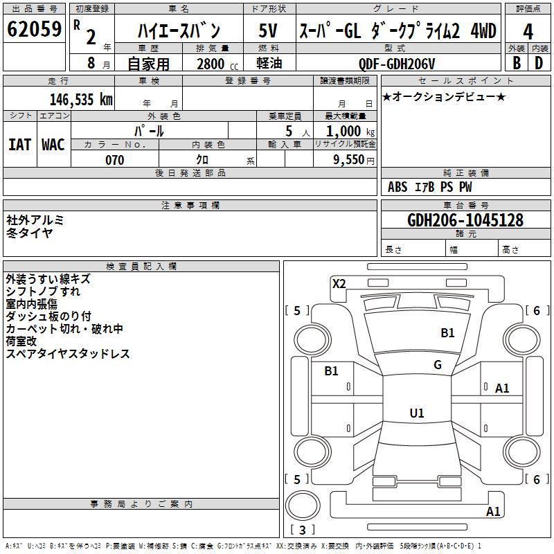 TOYOTA HIACE VAN SUPER GL DARK PRA I4WD - лот 62059