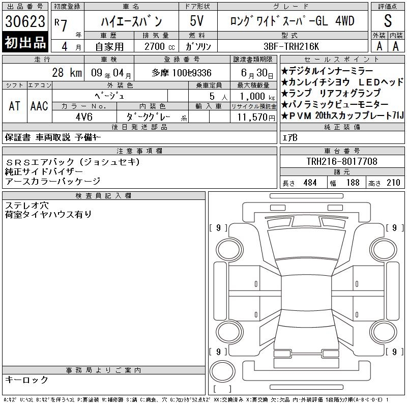 TOYOTA HIACE VAN LONG WIDE SUPER GL 4WD - лот 30623