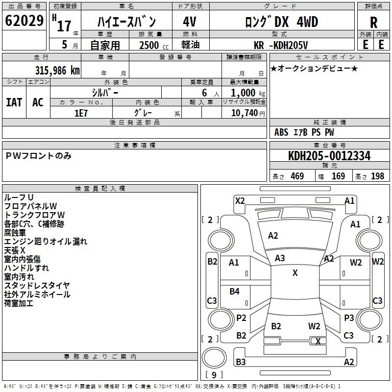 TOYOTA HIACE VAN LONG DX 4WD - лот 62029