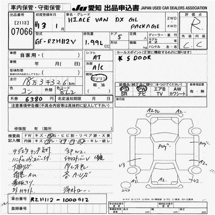 TOYOTA HIACE VAN DX GL PACKAGE - лот 7066