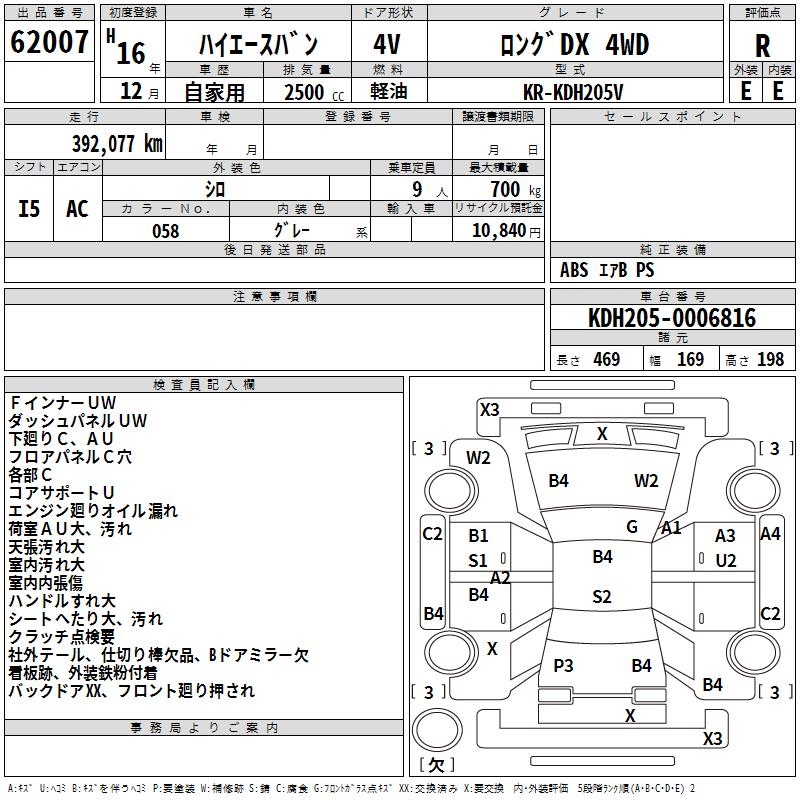 TOYOTA HIACE VAN LONG DX 4WD - лот 62007