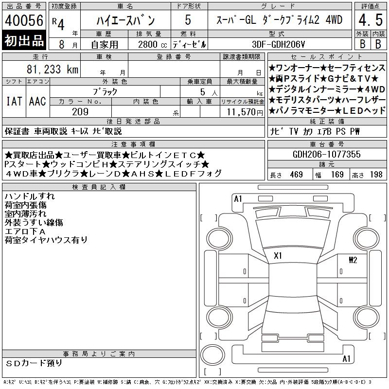 TOYOTA HIACE VAN SUPER GL DARK PRA I4WD - лот 40056