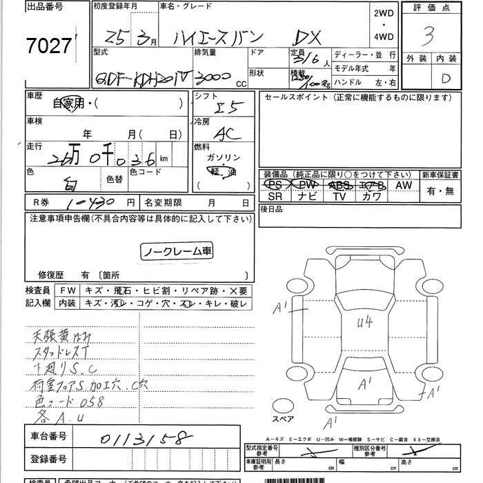 TOYOTA HIACE VAN DX - лот 7027
