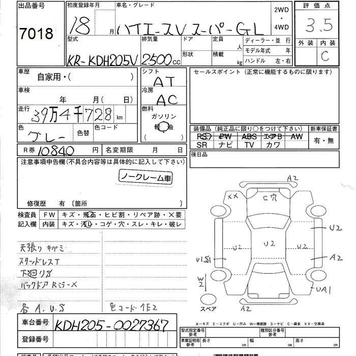 TOYOTA HIACE VAN SUPER GL - лот 7018