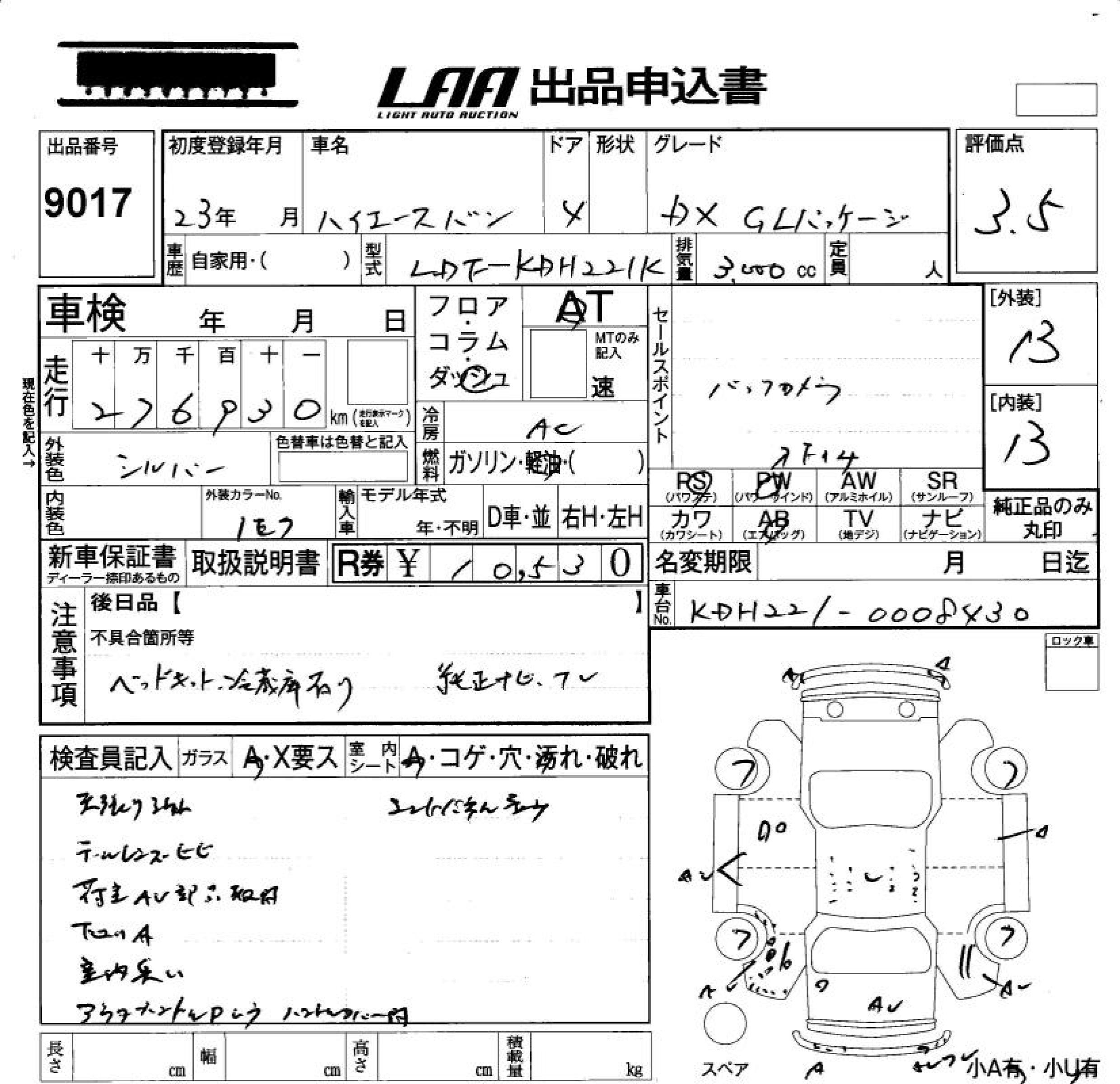 TOYOTA HIACE VAN DX GL PACKAGE - лот 9017