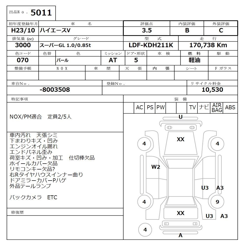 TOYOTA HIACE VAN SUPER GL 1.0/0.85T - лот 5011
