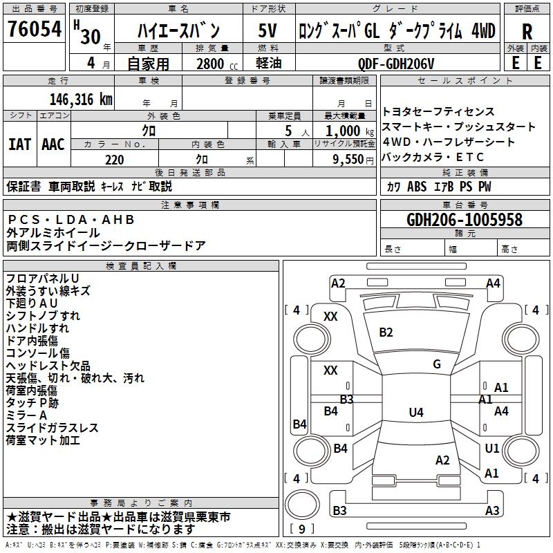 TOYOTA HIACE VAN LONG SUPER GL DARK F4WD - лот 76054
