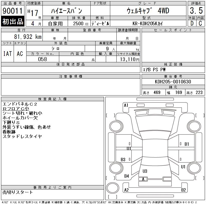 TOYOTA HIACE VAN WELL CAB 4WD - лот 90011
