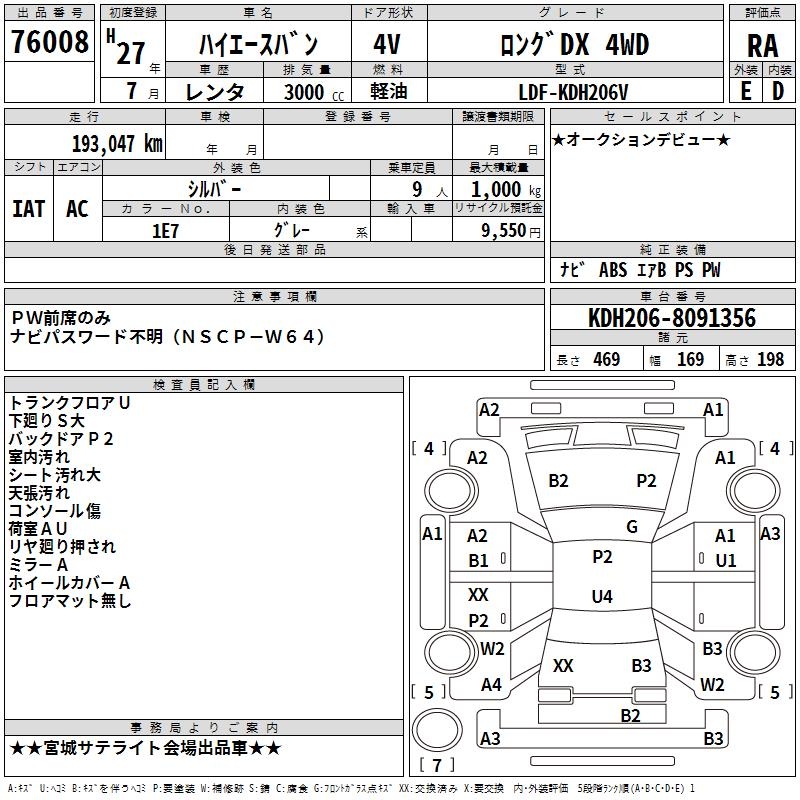TOYOTA HIACE VAN LONG DX 4WD - лот 76008