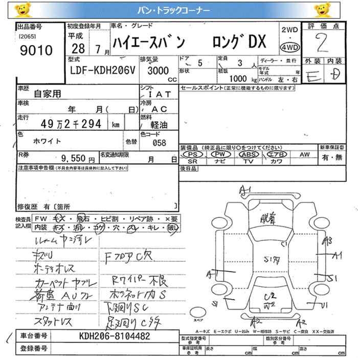 TOYOTA HIACE VAN 4WD LONG DX 1T - лот 9010