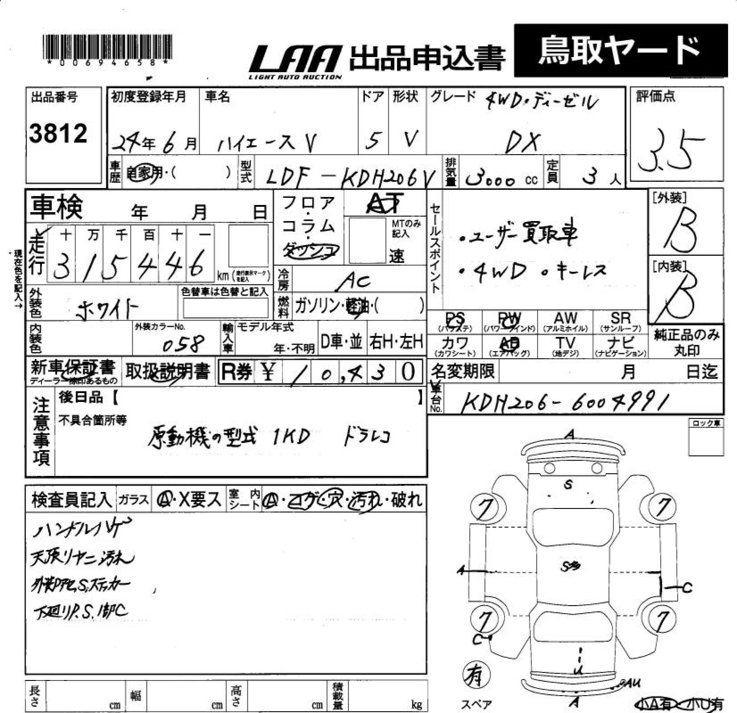 TOYOTA HIACE VAN DX 4WD* DIESEL - лот 3812