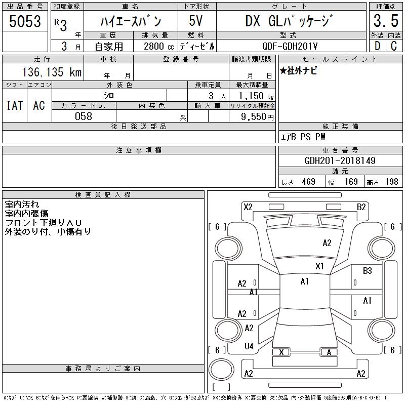 TOYOTA HIACE VAN DX GL PACKAGE - лот 5053