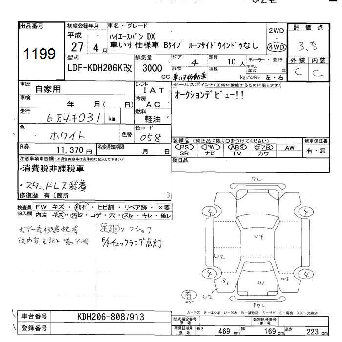 TOYOTA HIACE VAN 4WD DXKRU MY ACID USE CAR - лот 1199