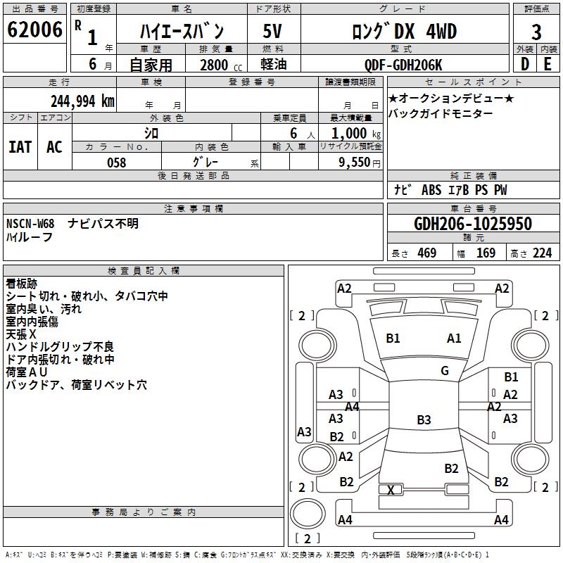 TOYOTA HIACE VAN LONG DX 4WD - лот 62006