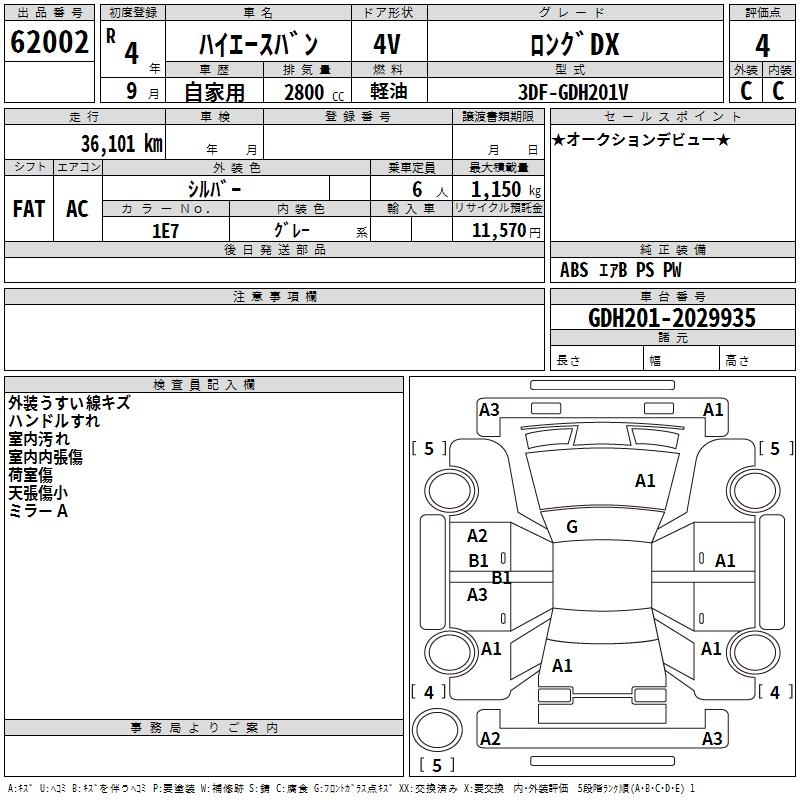 TOYOTA HIACE VAN LONG DX - лот 62002